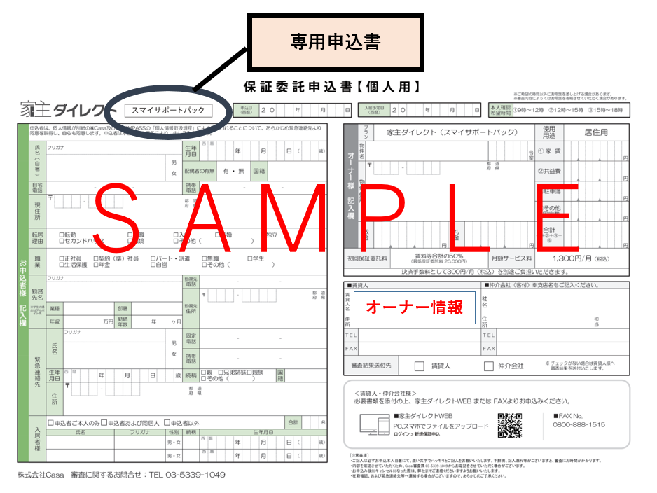 必ずスマイサポートパック(スマサポ)専用申込書が必要です。