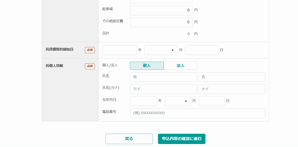 賃借人が電話番号をお持ちでない場合、申込はできません。